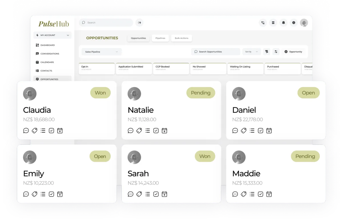 Leverage the power of Pulse Hub in your marketing strategy to automate your customer journey. Our built-in Pipeline Management feature, you can keep track of where the leads are and what stage they are in the sales funnel.
